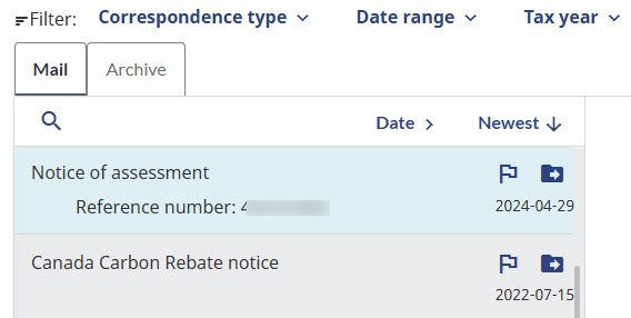 Once you have filed your taxes, your most recent Notice of Assessment will be added to your CRA Mail shortly after.