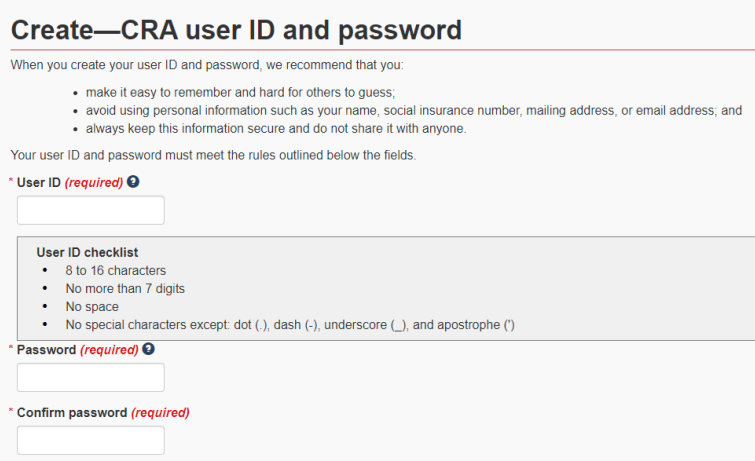 Click here open the CRA My Account Registration site in another tab and then continue the registration process described below.